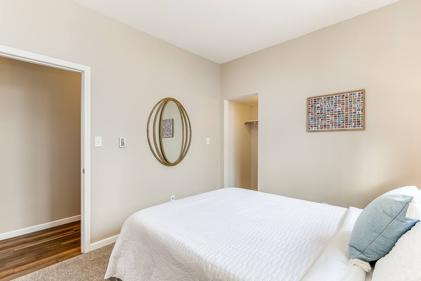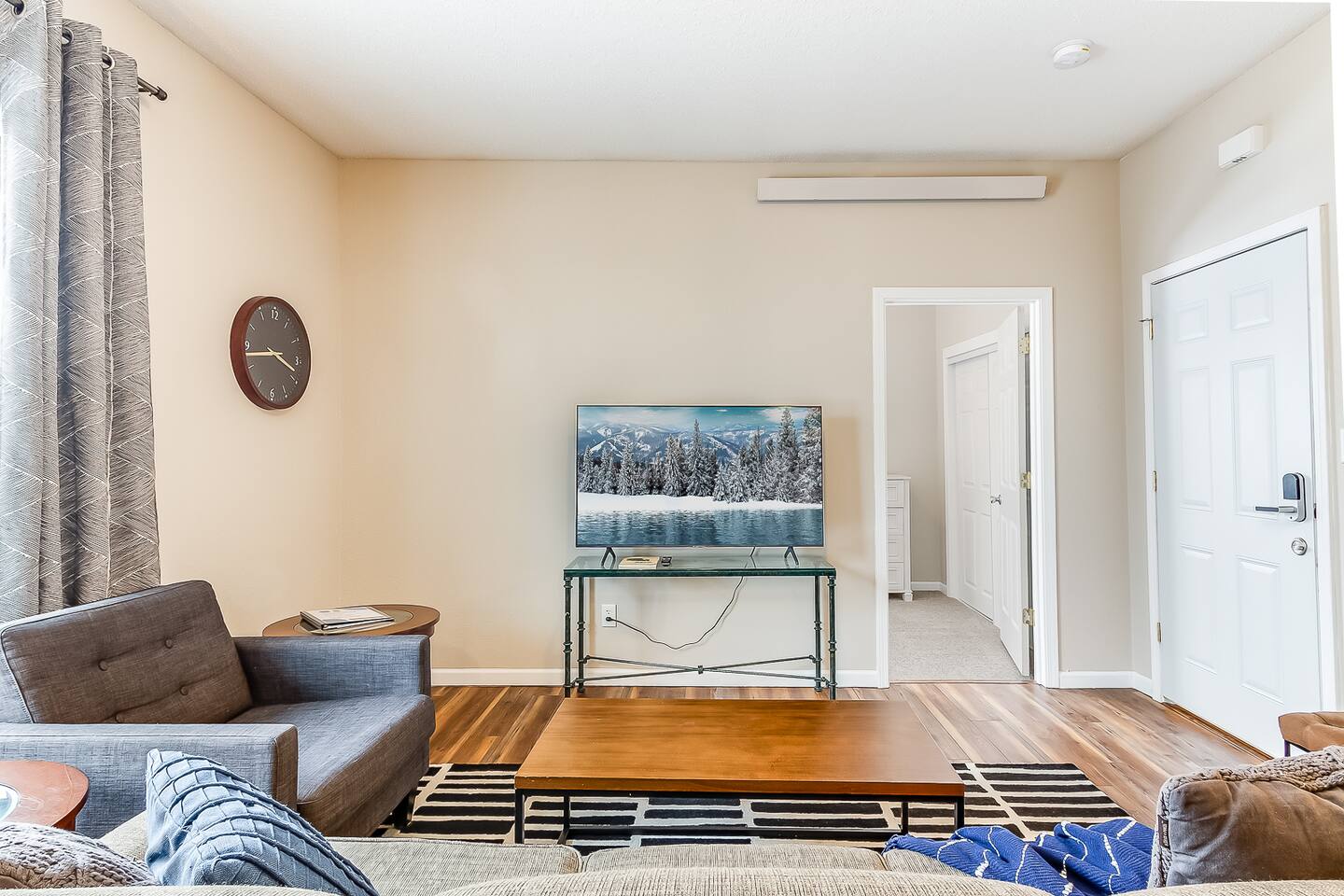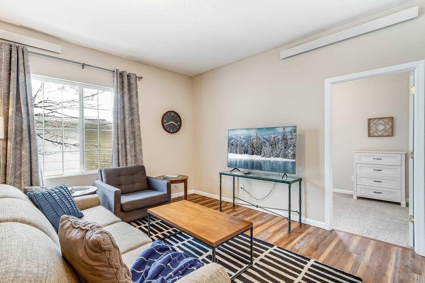 The two bedrooms each have a queen bed that is made to be melted into and dressed in crisp, white linens. The fully appointed kitchen is conveniently stocked with everything you need to prepare your own meals and a dedicated dining space. The spacious living room has a Smart TV on which you can stream all of your favorite shows or movies. Finally, the apartment has a full size bathroom and there is coin-op laundry just outside your apartment door.