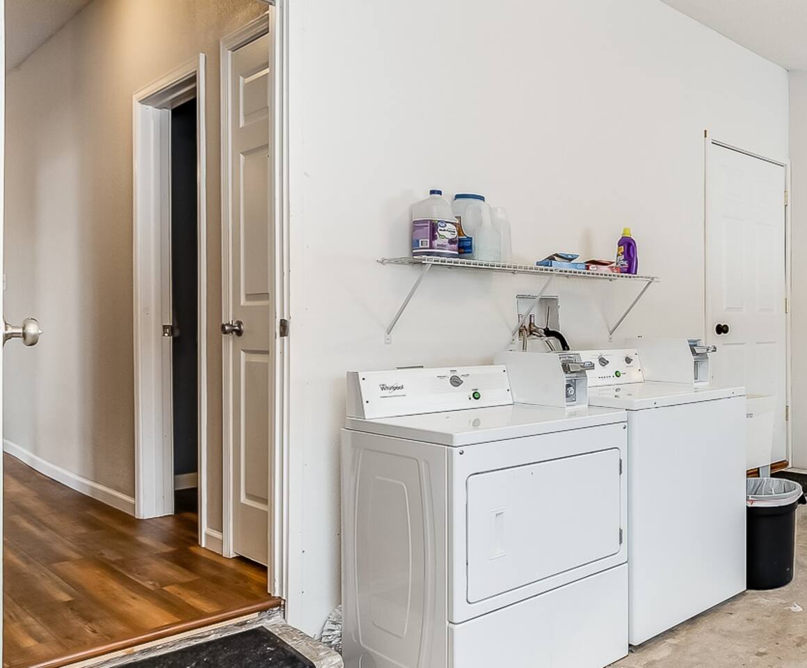 Once you’re settled in you’ll enjoy two comfortable bedrooms, cozy living room, stocked kitchen, and beautifully custom tiled bathroom. Additionally, there are coin-op laundry facilities available in the common laundry space.