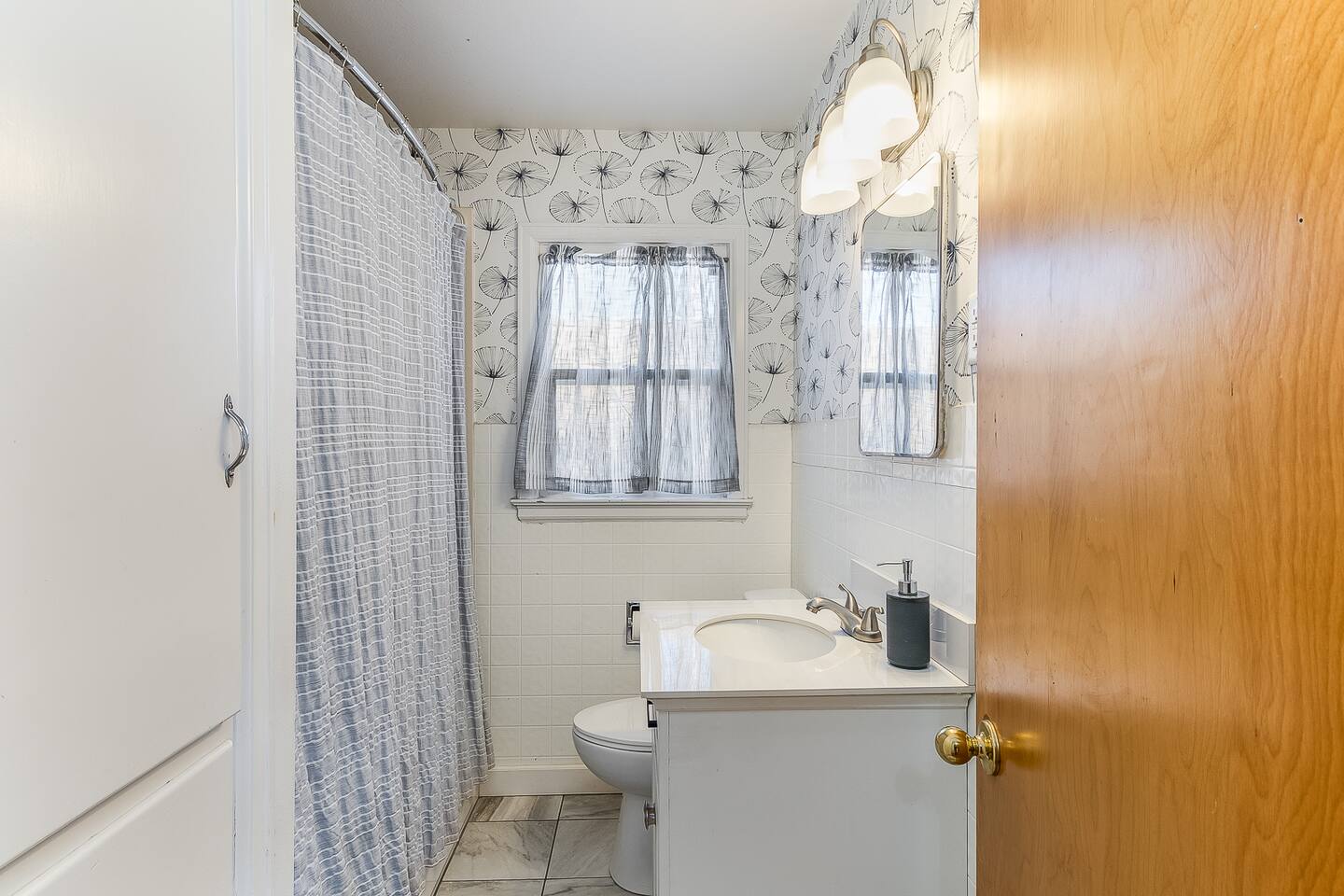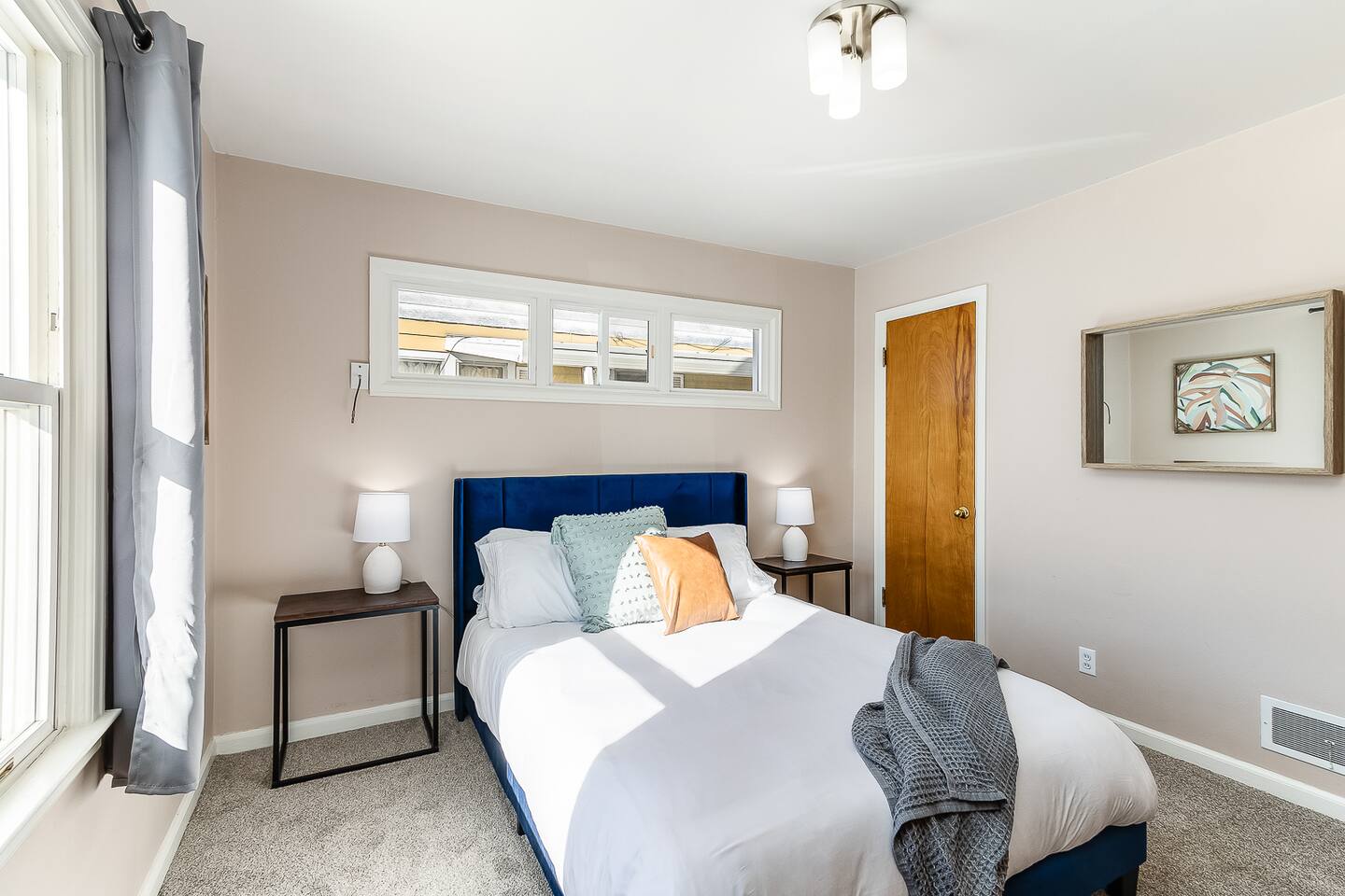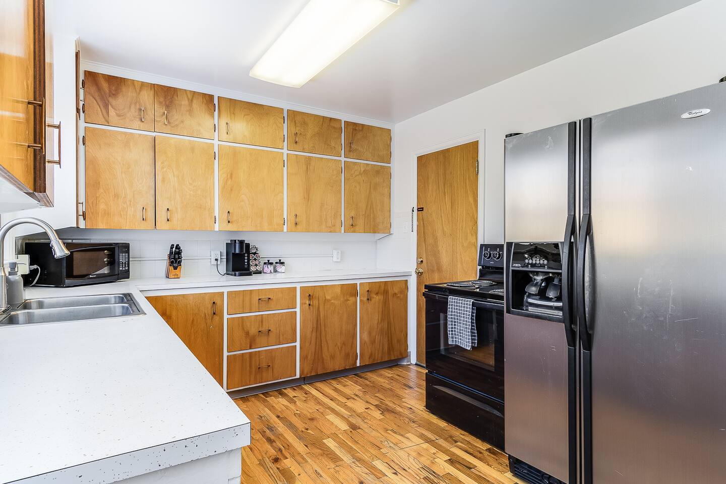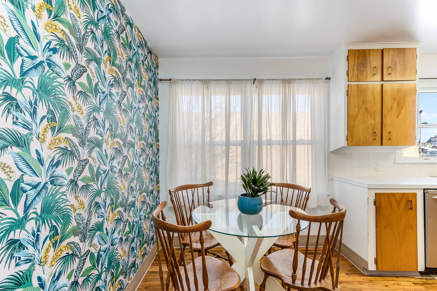 The home is perfect for groups or families. The five beds can comfortably accommodate up to 8 people. There is a generous sized living room for lounging. The full kitchen is equipped with dishes and cookware for your convenience and features a round dining table with seating for four. There is a full-size bathroom with tub/shower combo. Finally, for your laundry needs you can access the laundry room featuring coin-operated machines that is shared with a basement apartment.
