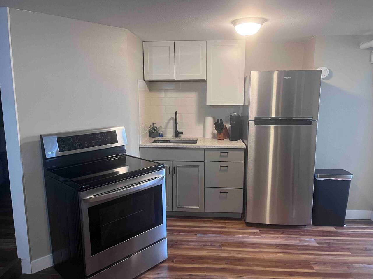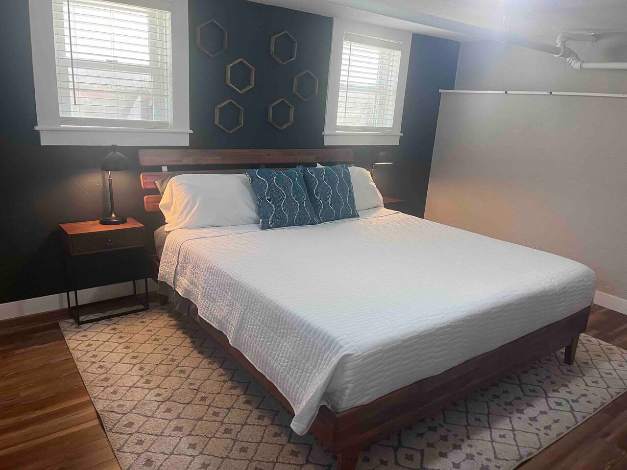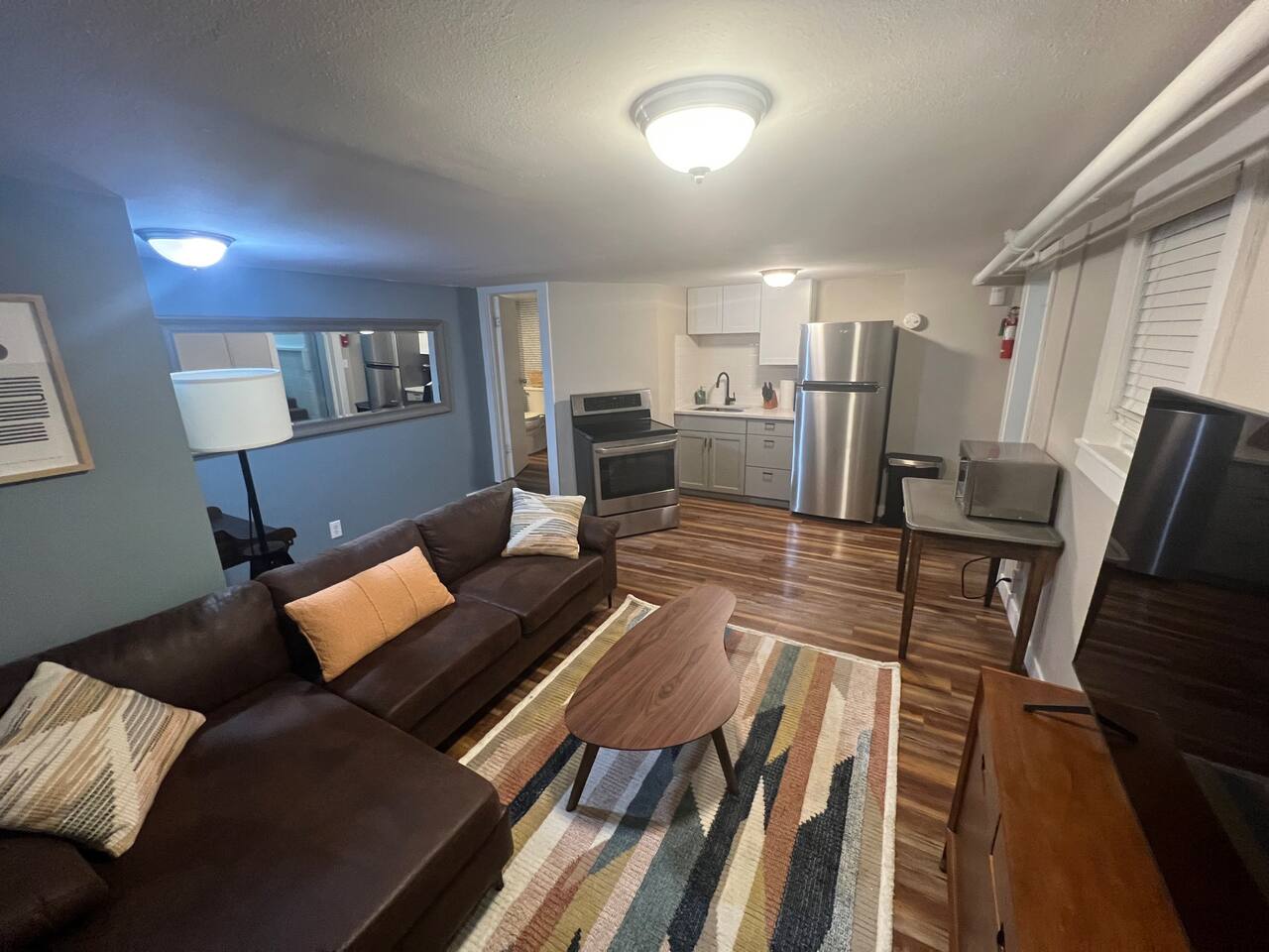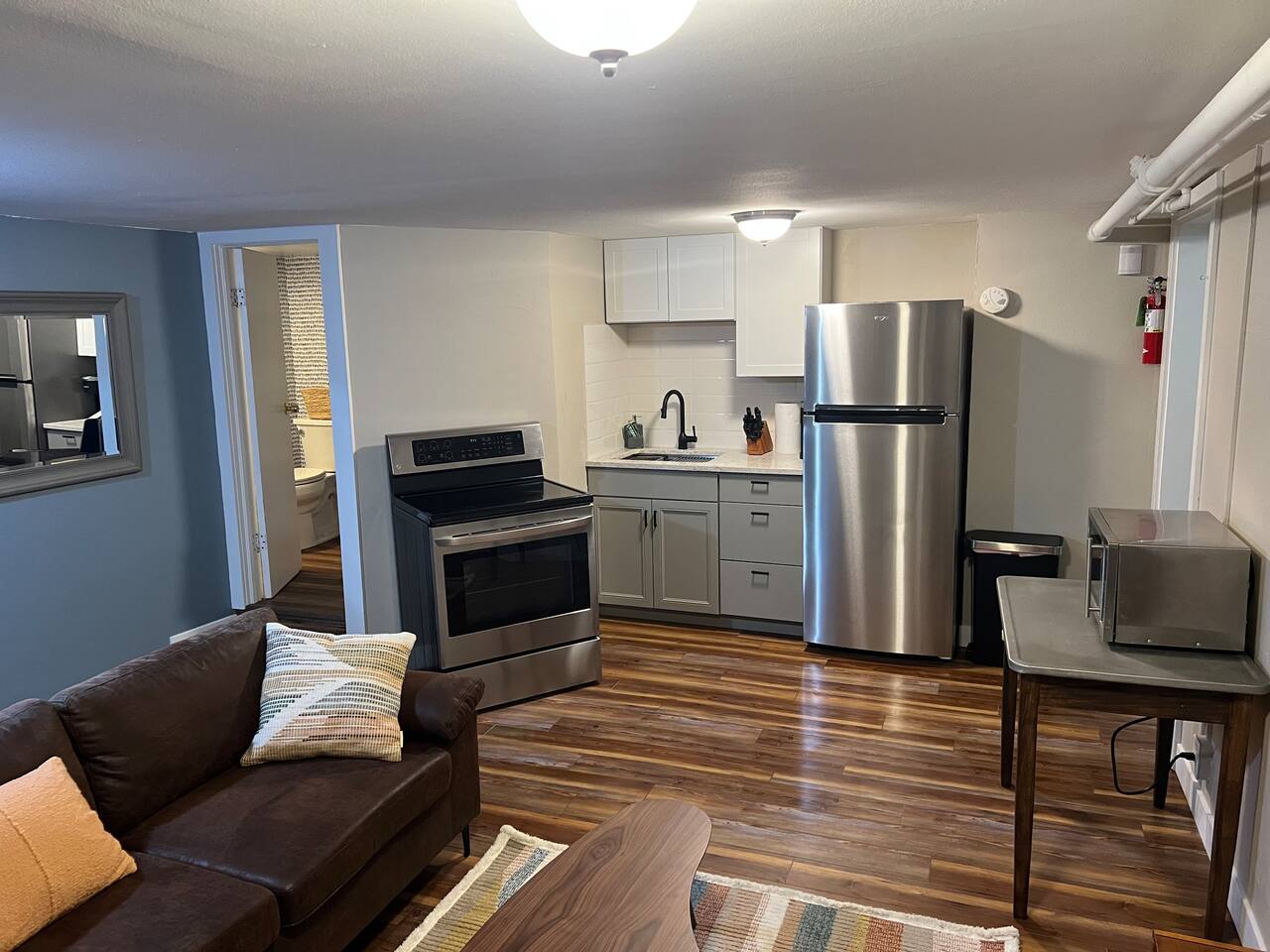 This 1-bedroom apartment is centrally located and has been redone top to bottom! You’ll be super comfortable in the plush king-size bed in the stylish bedroom. The living room is outfitted with a cozy couch and smart TV to stream your favorite programs. The living room is open to the kitchen which has new appliances and is stocked with all you need to cook your favorite meal. The beautiful bathroom has a custom tiled shower. Please note, there is low clearance (72”) in the bathroom.
